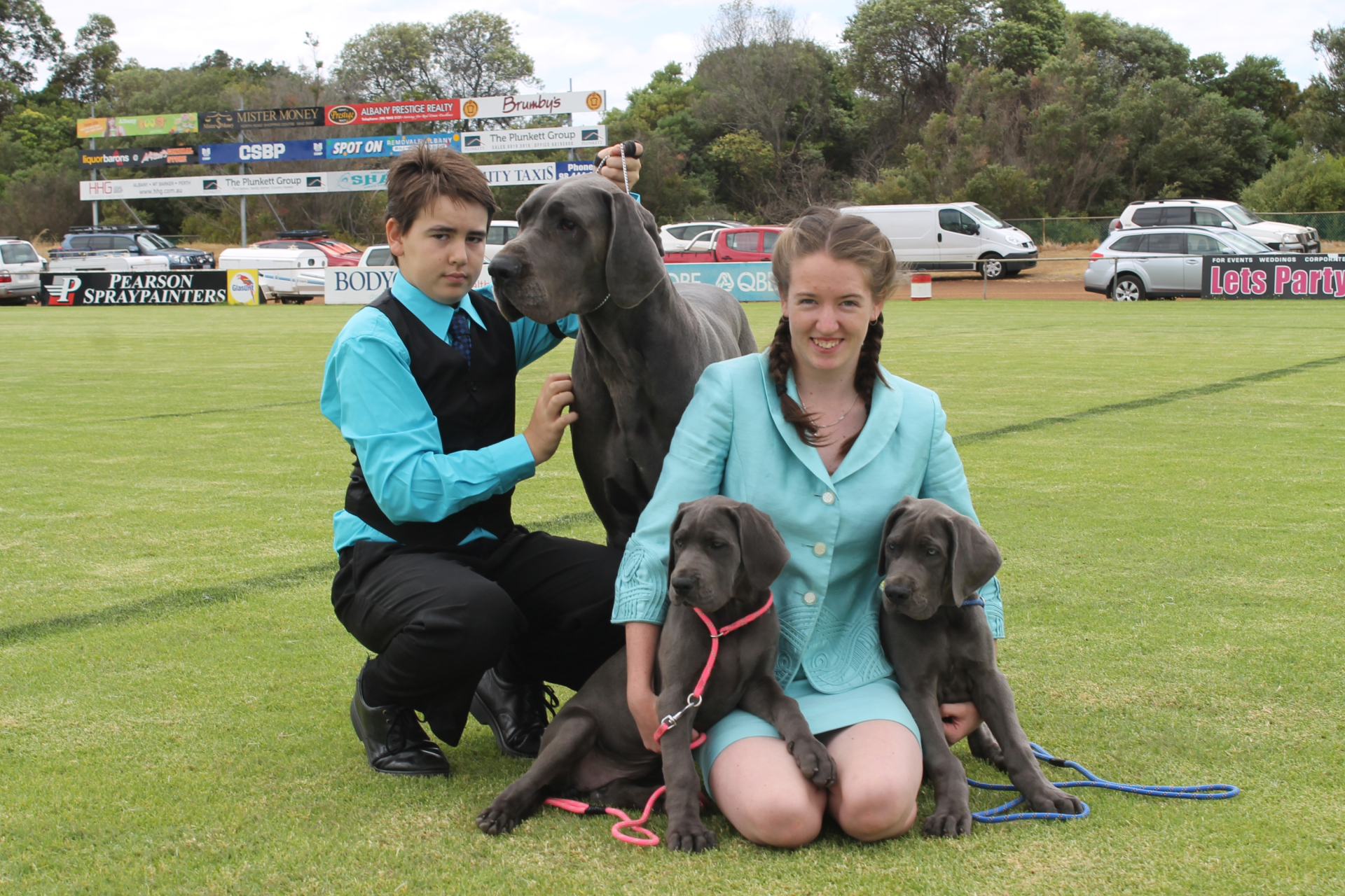 Holly, Tommy and Seren with Aimee and Mitchell, in Albany, The picture was taken by the local newspapers photographer and the picture was in the news paper february 19th 2015, advertising the dog show.